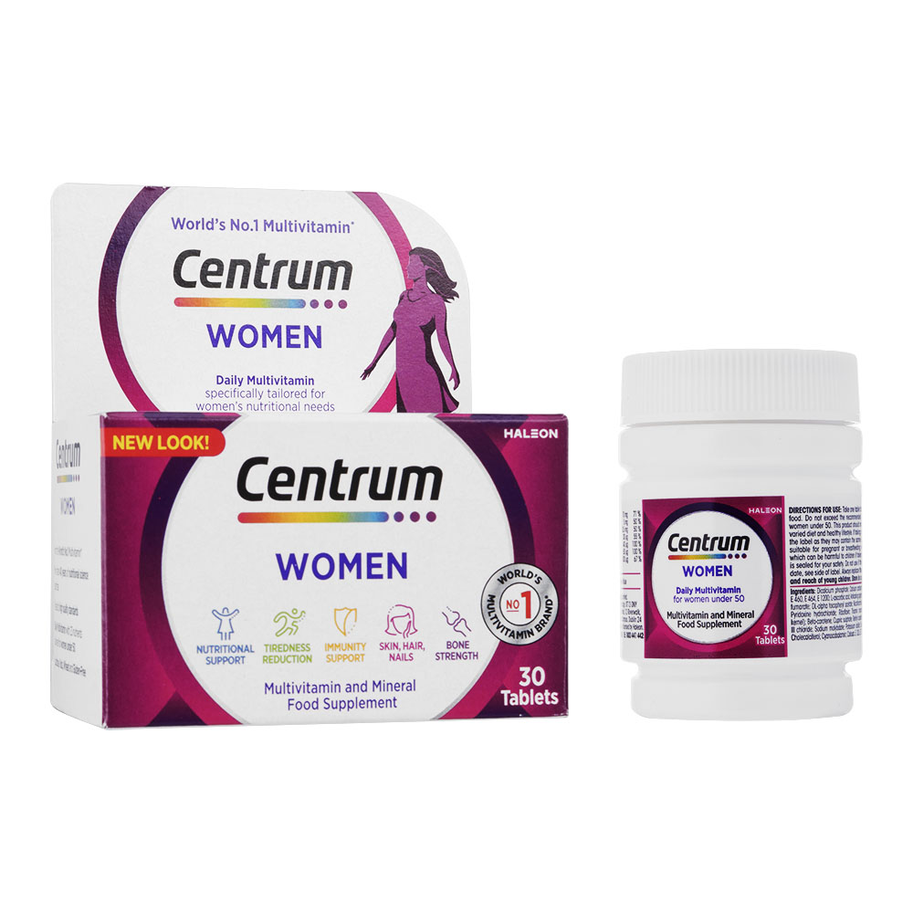 世界売上No.1のマルチビタミンCentrum(セントラム)による、50歳未満の女性向けデイリーマルチビタミンです。50歳未満の女性のために設計された23種類の栄養素を配合。40年以上培われてきた研究開発と科学的根拠に基づいて作られています。高品質基準でテスト済み。乳糖・ナッツ・小麦・グルテン不使用です。■本品のメリット女性向け栄養サポート:女性特有のニーズに合わせた栄養素をブレンド。疲労軽減:ビタミンB6・B12・鉄が疲労や倦怠感の軽減に寄与します。免疫サポート:ビタミンCとDが免疫機能を正常に保ちます。肌・髪・爪の健康:ビオチンと亜鉛が正常な髪と肌を維持し、セレンが健康的な爪をサポートします。骨の強さ:カルシウム・ビタミンD・ビタミンKが丈夫で健康な骨の維持に役立ちます。[使用方法]1日1錠を目安に水と一緒に、可能であれば食事の際にお召し上がりください。[注意事項]1日の推奨摂取量を超えないでください。本品は、多様でバランスの取れた食事や健康的な生活習慣の代わりにはなりません。他のサプリメントを摂取している場合、同じ