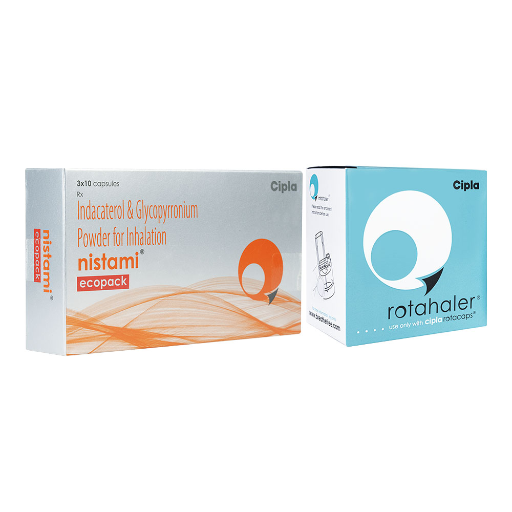 Each Capsule Contains: Indacaterol (as Indacateral Maleate) 110 mcg, Glycopyrronium (as Glycopyrrolate IP) 50 mcg, Excipients q.s.