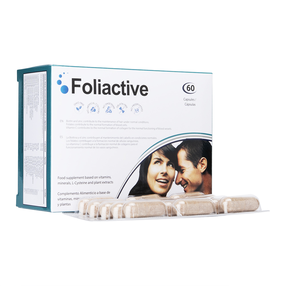 Recommended Daily Dose Includes (2 Capsules): Fenugreek Seeds Dry Extract (Trigonella Foenum-Graecum L.) 600 mg, Grape Seeds Dry Extract (Vitis Vinifera L.) 300 mg, Coating Agent (Hydroxypropylmethylcellulose (Transparent Vegetable Capsule)), Vitamin C (as L-Ascorbic Acid) 100 mg, L-Cysteine Hydrochloride Anhydrate 60 mg, Vitamin E (DL-Alpha Tocopherol) 30 mg, Zinc Oxide 23.9 mg, Iron (II) Sulfate Monohydrate 21.8 mg, Calcium D-Pantothenate (Vitamin B5) 19.6 mg, Niacin (Vitamin B3, as Nicotinamide) 18 mg, Bulking Agent (Microcrystalline Cellulose (E460)), Anti-Caking Agent (Magnesium Stearate (E470b)), Pyridoxine Hydrochloride (Vitamin B6) 7.3 mg, Thiamine Hydrochloride (Vitamin B1) 4.5 mg, Riboflavin (Vitamin B2) 3 mg, Cyanocobalamin (Vitamin B12) 3 μg, Anti-Caking Agent (Silicon Dioxide (E551)) and D-Biotin (Vitamin B7) 450 μg.